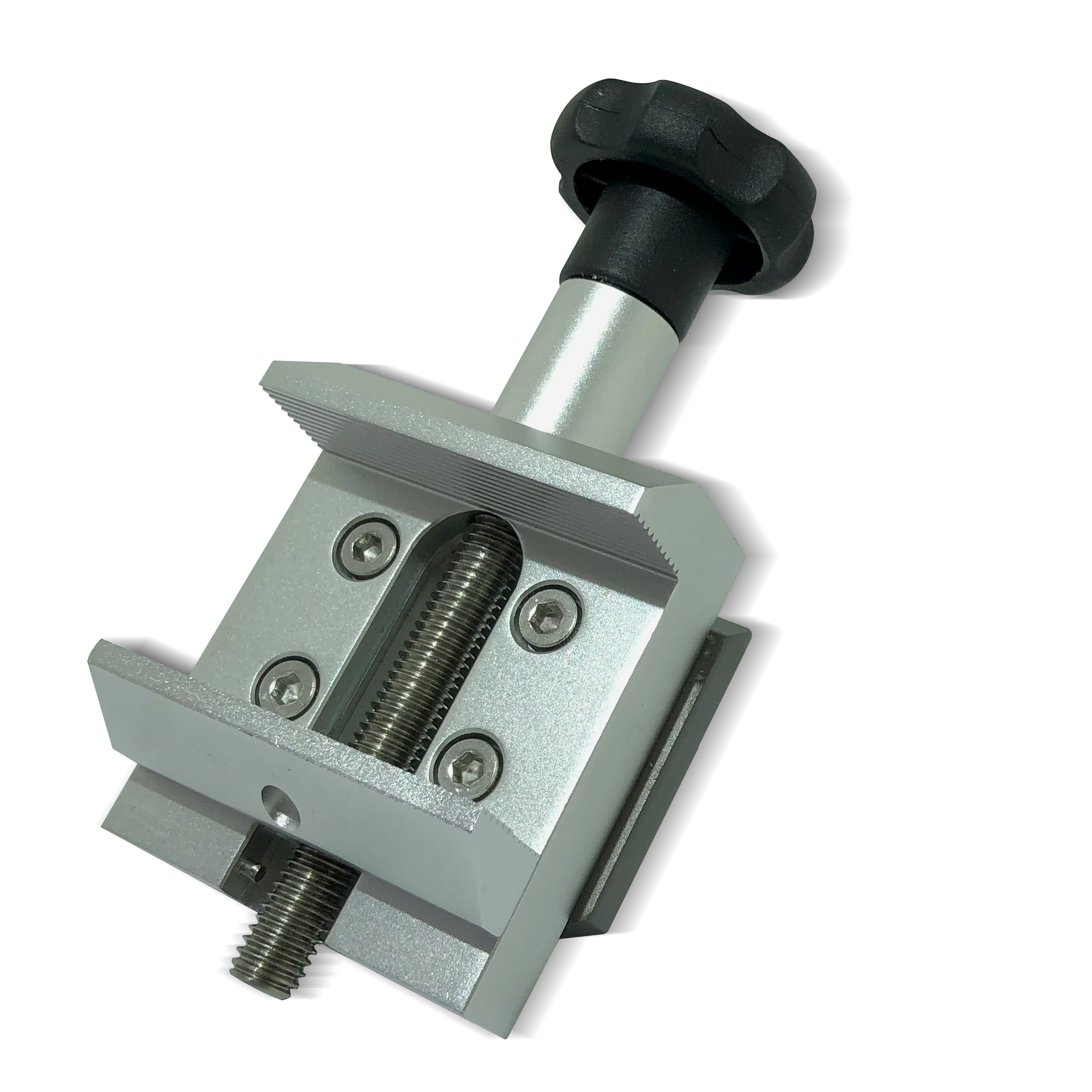 - Guía de muestras con mecanismo de sujeción rápida y posicionamiento en los ejes horizontal y vertical y rotación de hasta 360 grados;